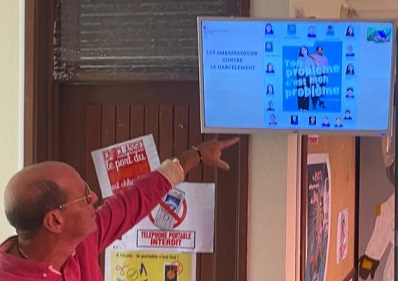 Cette journée était consacrée à une campagne d’informations sur la lutte contre le harcèlement au sein du collège, avec différents temps forts, dont la visite de Madame La Directrice de cabinet du Recteur et de deux responsables de l’équipe académique du programme pHARe, ainsi que de la chargée de communication.