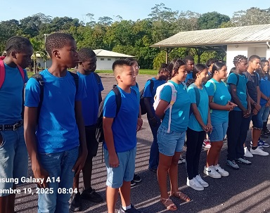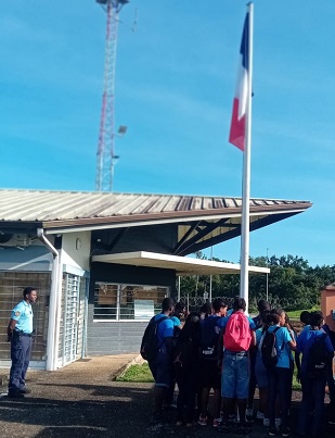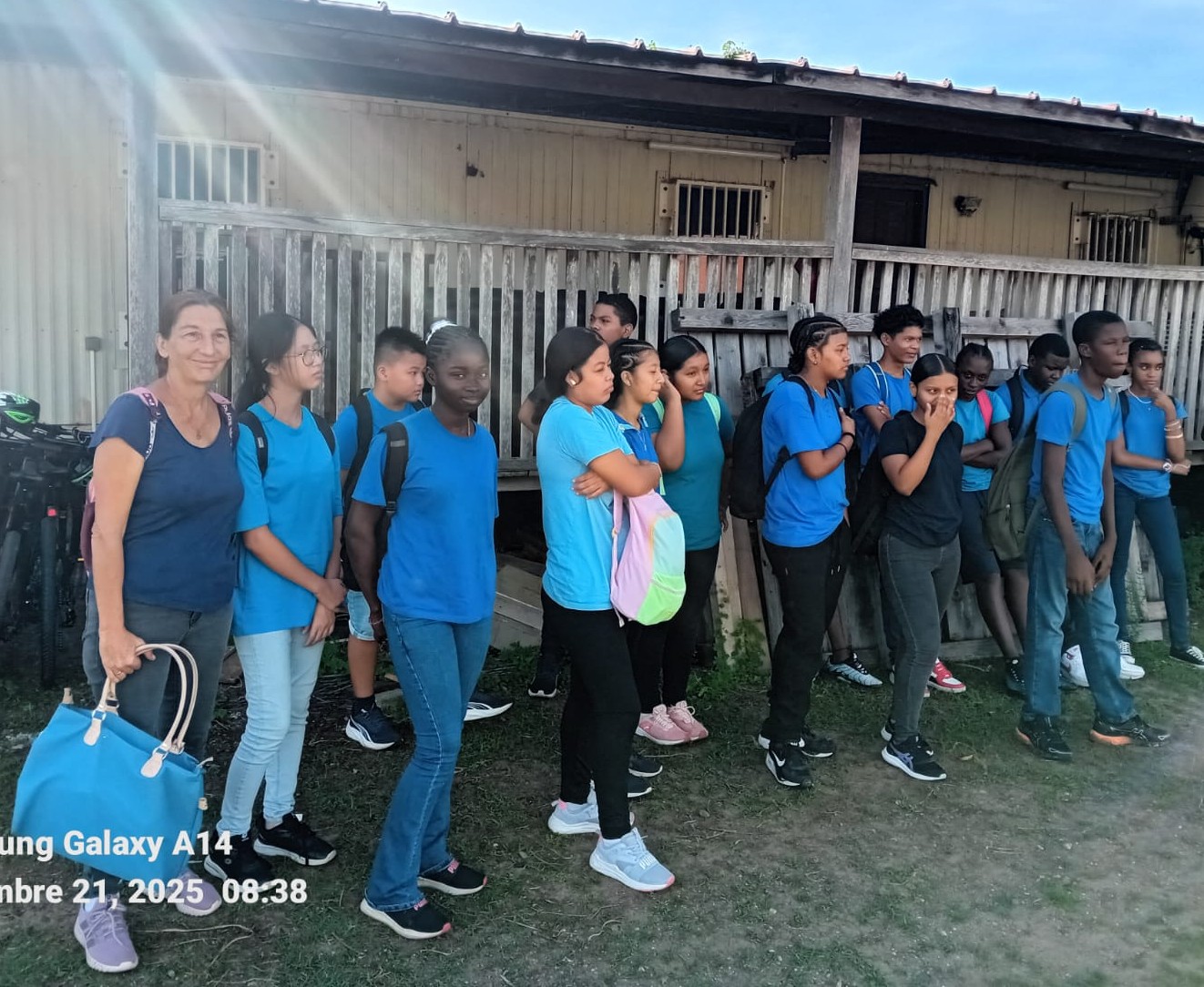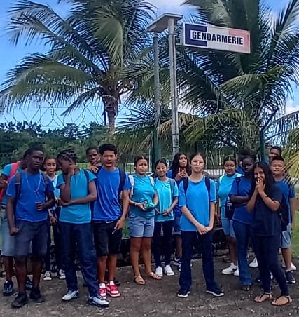 | Le mercredi 19 novembre 2025, les seize élèves de la Classe Défense accompagnés de M. Exilie (Principal du collège) et de Mme Moraes (Responsable du dispositif) se sont rendus à la brigade de gendarmerie d’Iracoubo. Ils ont été accueillis par le Major Meignen (Chef de la caserne), qui s’est chargé de la visite des locaux. | ![]() |