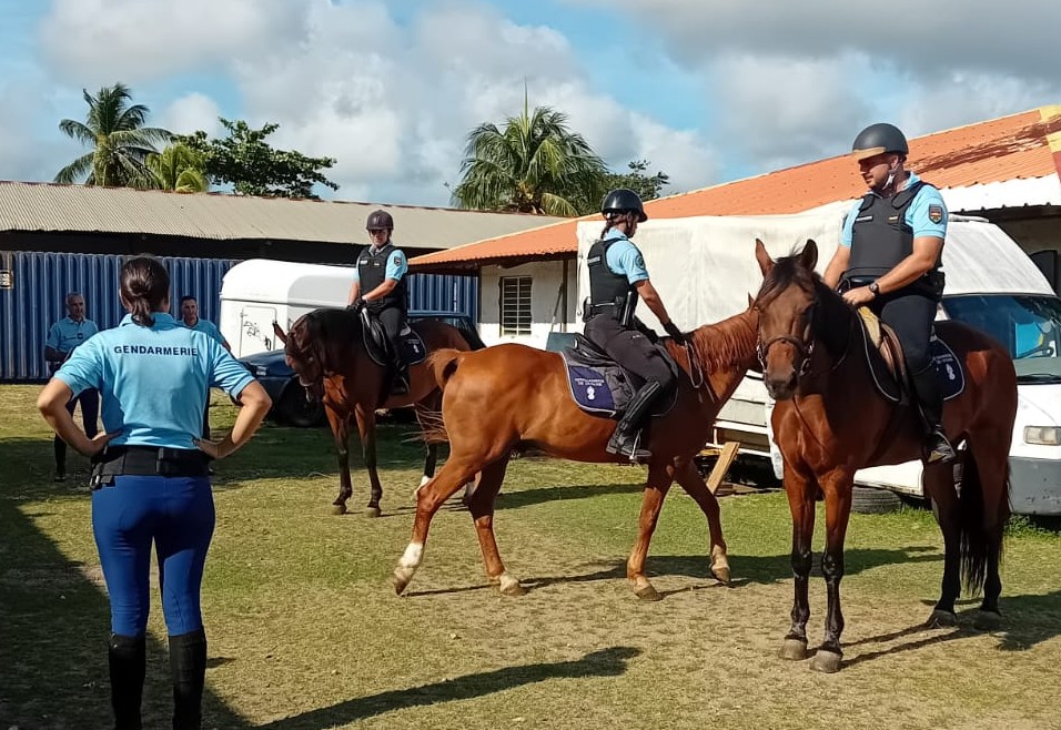 | Le vendredi 21 novembre 2025, les seize élèves de la Classe Défense, toujours accompagnés de la Responsable du dispositif se sont rendus au Centre équestre de Kourou, où ils ont pu assister à un stage CAPEG (Certificat d’Aptitude de la Pratique Equestre en Gendarmerie). Une monitrice certifiée était présente pour cette formation de gendarme à cheval. | ![]() |